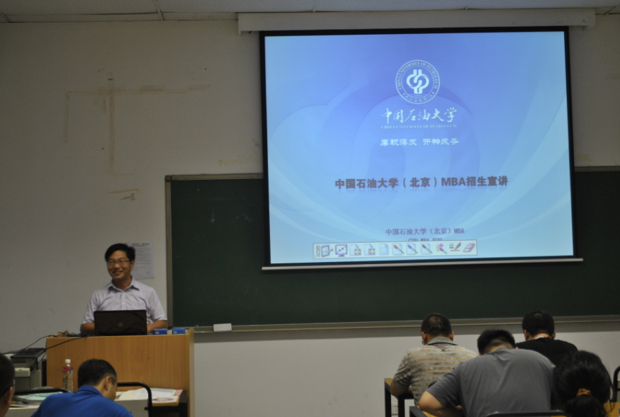 2014年7月5日中国p站中文网站(北京)MBA招生宣讲会走进清华大学--社科赛斯教育集团MBA备考考生课堂。中国p站中文网站工商管理学院副院长、MBA教育中心主任郭海涛博士对2015年各项招生政策进行了解读。郭院长着重介绍了中国p站中文网站MBA的师资队伍、实践教学、能源特色班、提前面试政策、职业发展等项目优势和特色。中国p站中文网站(北京)是是教育部直属全国重点大学,国家“211工程”、国家“985工程优势学科创新平台”项目建设高校,被誉为“石油人才的摇篮”。中国p站中文网站(北京)MBA项目整合的全校优质资源,发挥了石大特色和优质师资优势。