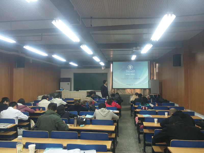 2014年10月25日,中国p站中文网站(北京)MBA中心老师来到社科赛斯船舶所教学点,为备战2014年联考的学员宣讲石大(北京)的招生策略。