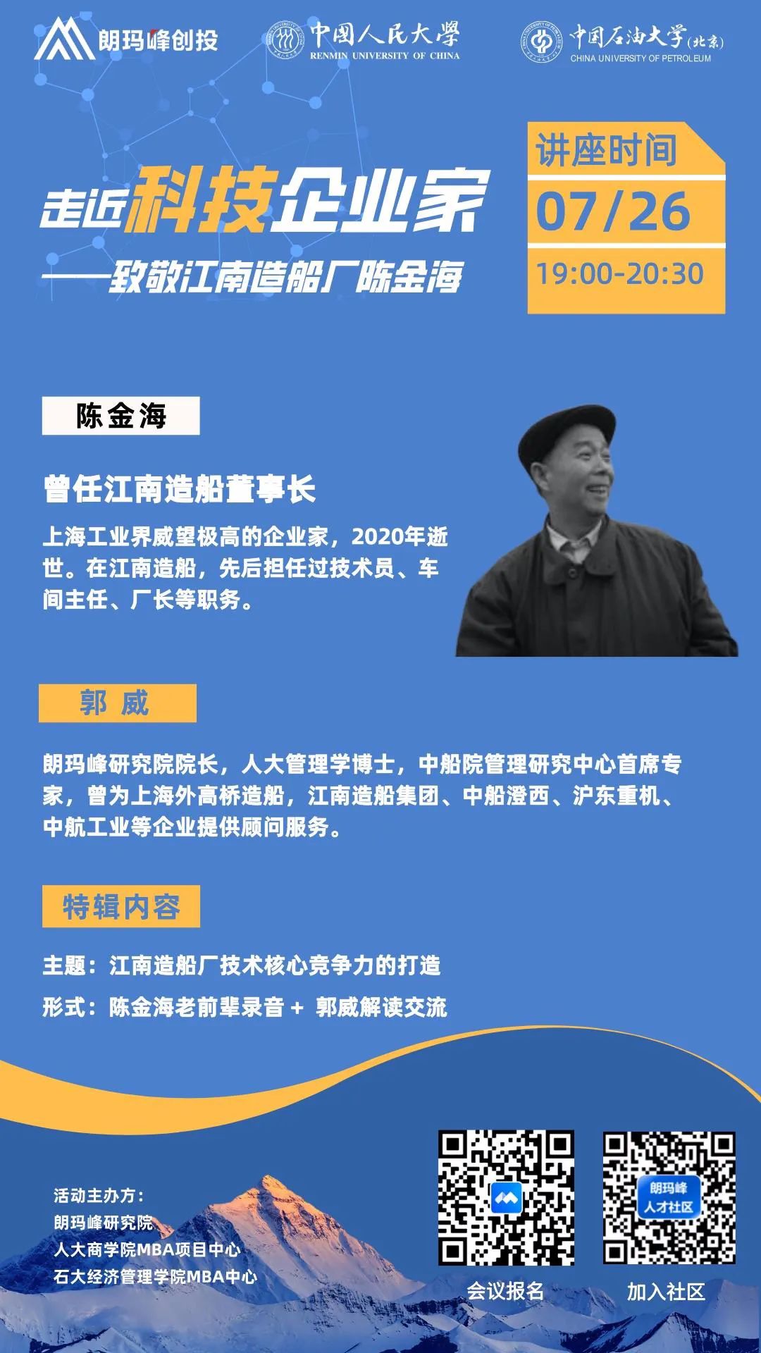 陈金海,曾任江南造船(集团)董事长,上海工业界威望极高的企业家。2020年,逝世。
